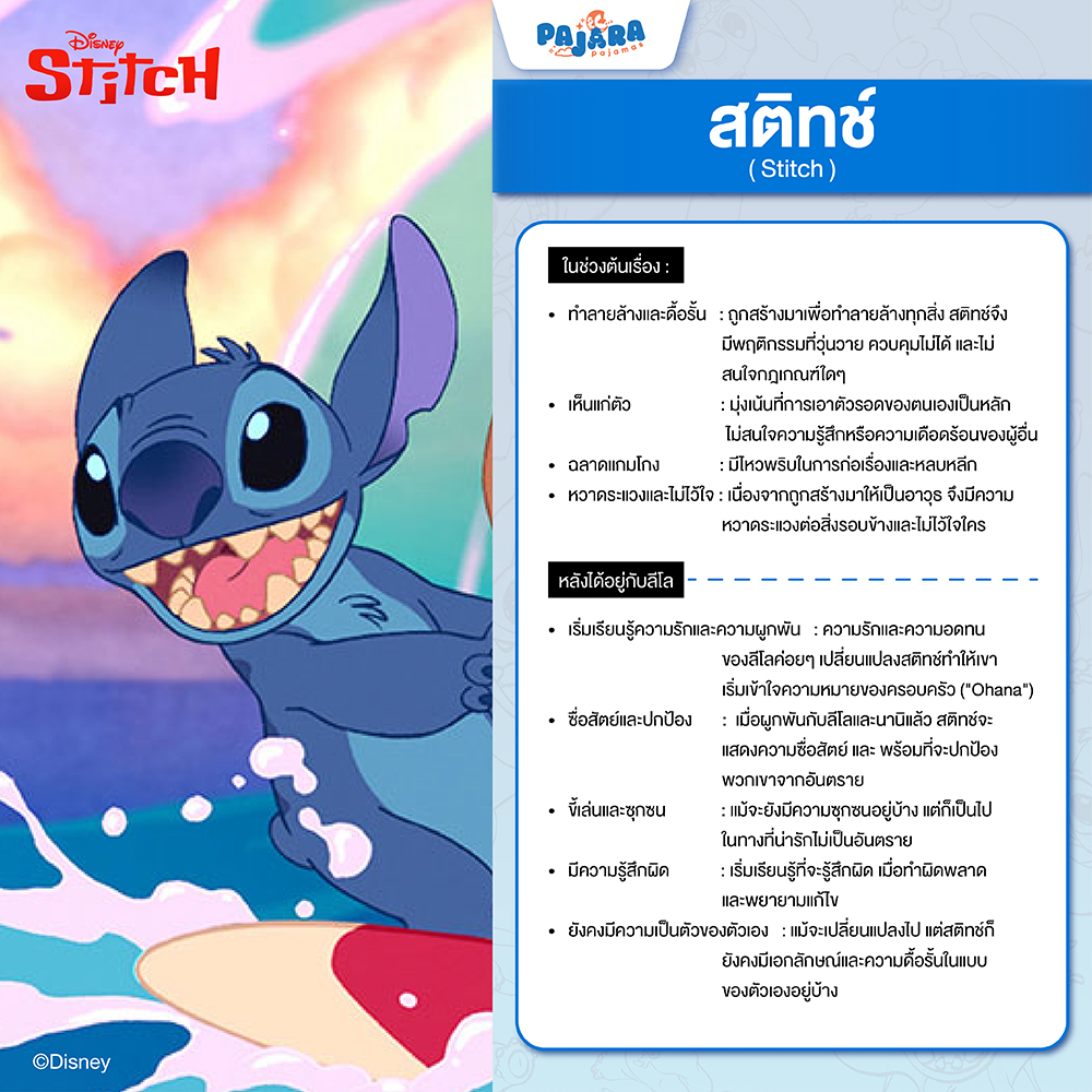 สวัสดีค่ะแฟนๆ Pajara Pajamas และชาว Ohana ทุกคน! วันนี้เราจะพาทุกคนดำดิ่งสู่จักรวาลสุดอบอุ่นของ "Lilo & Stitch" เพื่อทำความรู้จักกับตัวละครน่ารักๆ ที่คุณอาจยังไม่เคยรู้จักลึกซึ้งถึงนิสัยใจคอของพวกเขา! เพราะไม่ใช่แค่ Stitch ตัวเดียวที่น่ารักน่าเอ็นดูนะคะ แต่ทุกตัวละครในเรื่องนี้ต่างก็มีเสน่ห์เฉพาะตัวที่น่าหลงใหลไม่แพ้กันเลยค่ะ เตรียมตัวหลงรักพวกเขามากกว่าเดิมได้เลย!